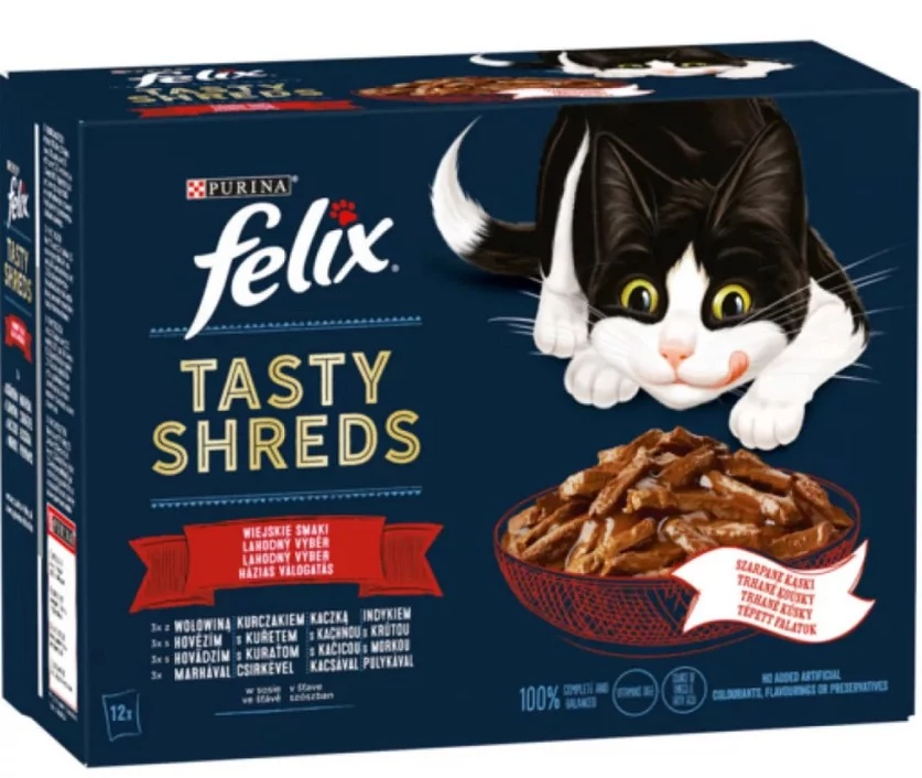 FELIX Tasty Shreds Házias válogatás szószban nedves macskaeledel 12x80g