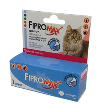 A Fipromax Spot-On rácsepegtető oldat macskáknak bolhák és kullancsok okozta fertőzés gyógykezelésére és megelőzésére szolgál. A készítmény alkalmas továbbá tetvek, ragadozó atkák és rühatkák elleni védekezésre és bolha okozta allergiás bőrgyulladás kezelésére és megelőzésére.
