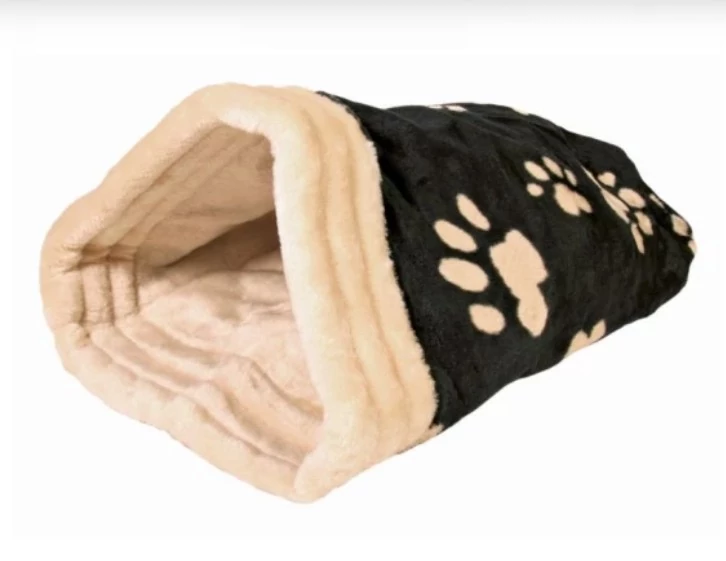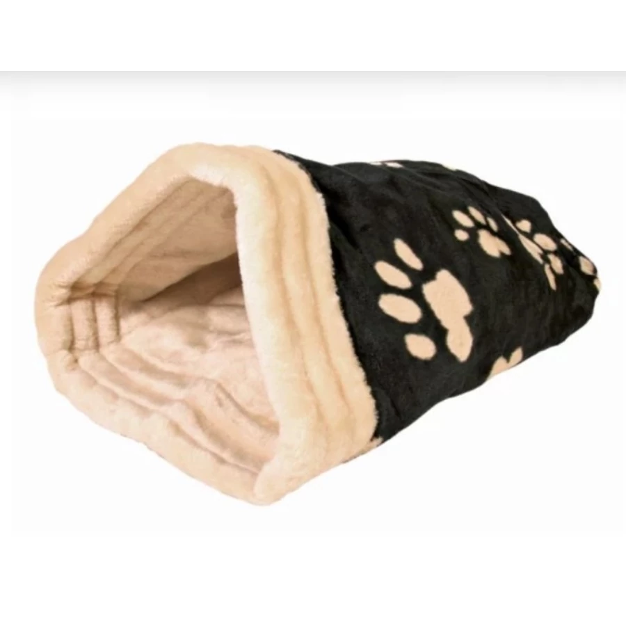 A Trixie Jasira bebújós alvótáska puha belsővel és 3 cm vastag poliészter béléssel. Így macskája kényelmesen tud nyújtózni és rejtőzni a táska ölelésében. Pereme habbal megerősített, így a padlón nem veszti el formáját. Belseje plüss anyagból. Külseje fekete mancsnyomokkal díszített. Tisztítása egyszerű: 30°C-on mosható Trixie Jasira bebújós alvótáska jellemzői: